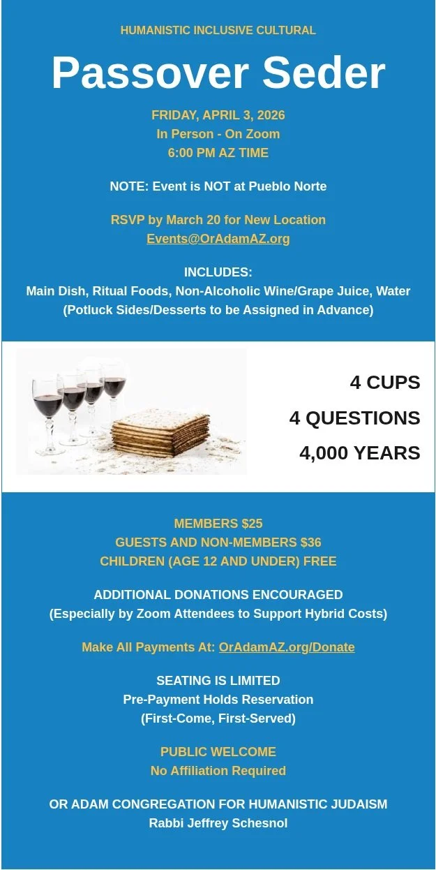 ANNUAL FAMILY PASSOVER SEDER Friday, April 3, 2026 6:00 PM 9:00 PM 18:00 21:00 Google Calendar ICS Annual Family Passover Seder To Make a Reservation click here.To Make a Payment, Click on the Flyer. Additional Donation: Click here